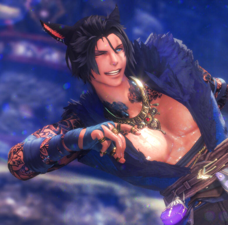 Trained in the performing arts from a young age, the Miqo'te with Corvosi heritage has amassed quite the repertoire of skills under his belt. From singing, to dancing, to the manipulation of the heartstrings with just a single glance, he's an expert at what he does.