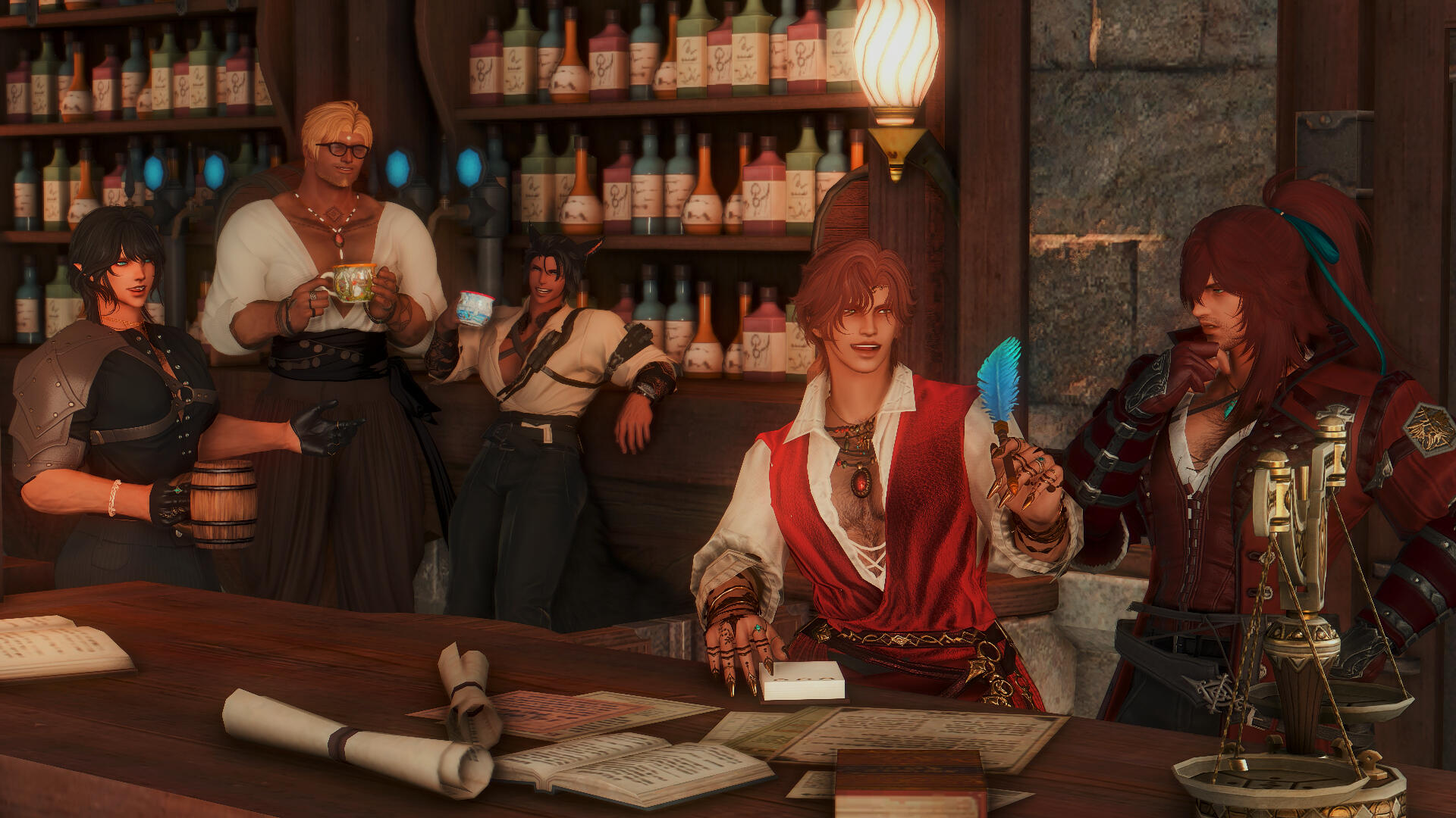 Luca Amhari is the current owner and head of the Amhari Mercantile Company of Tural, a Pelupelu-established merchants' guild that operates across the star, bringing wares from beyond Tural's borders into her purview, and vice-versa. While the Elezen man was not born to Pelupelu, he considers his adopted family his greatest treasure, and works tirelessly to make them proud as a merchant, standing for the core tenets of Pelupelu trade. He has signed a contract with the Comet's Tale Inn to provide goods at a fair and reasonable cost that is mutually beneficial to both parties, and, of course, he gets to enjoy a drink and a song whenever he pleases.