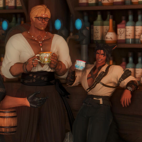 Cyrus Starcrest, a man of Ala Mhigan descent born in Dravania, once had the distinguished privilege of serving for the Knights Dragoon before an injury saw him bereft of station. While he took to being a therapist rather well shortly after, he could not resist the clarion call of adventure. Meeting Aster was the catalyst for his rehabilitation, and now that his wounds have healed and he has spent the greater part of a decade traveling with his two now-husbands, he has sworn himself to the betterment of the star and her peoples. He takes up the mantle of Huntsmaster of the Comet's Tale Inn, gathering information on anyone and any place in need of help. From rebuilding efforts to monster-culling to proper monster hunts all their own, Cyrus has dedicated himself to the cause fully. Be it with a sanctioned job posting, or with his own blades, he will see the troubles handled.