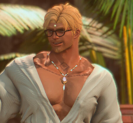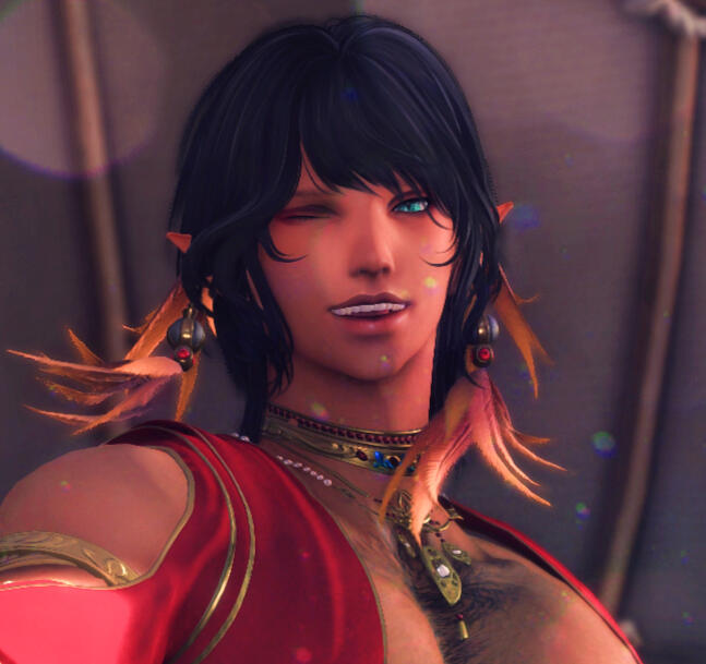 Luca Amhari is the current owner and head of the Amhari Mercantile Company of Tural, a Pelupelu-established merchants' guild that operates across the star, bringing wares from beyond Tural's borders into her purview, and vice-versa. While the Elezen man was not born to Pelupelu, he considers his adopted family his greatest treasure, and works tirelessly to make them proud as a merchant, standing for the core tenets of Pelupelu trade. He has signed a contract with the Comet's Tale Inn to provide goods at a fair and reasonable cost that is mutually beneficial to both parties, and, of course, he gets to enjoy a drink and a song whenever he pleases.